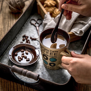 Koppo Living Handbemalte Kaffee-Tasse mit Deckel & Löffel Keramik 350ml Retro-Design